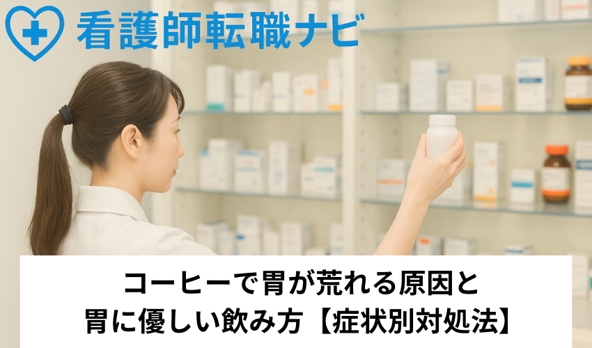 まずコーヒーの摂取を控え、水分補給を行います。症状が続く場合は胃薬の服用や医師への相談をおすすめします。